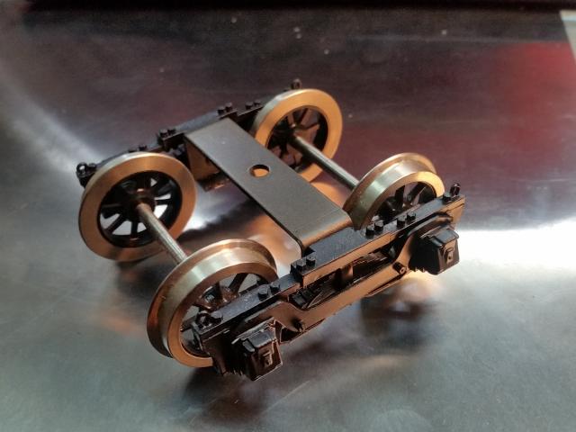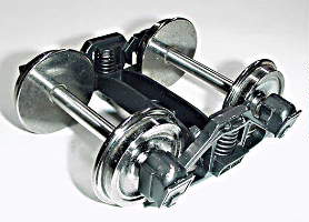 ベッテンドルフ台車 (アメリカの貨車用/近代の日本の貨車) 細部のディテールに凝ってみました。 タイヤ径28mm/軸間54mm 定価 ¥19,000− (1両分)。 (消費税込価格\20,900) |